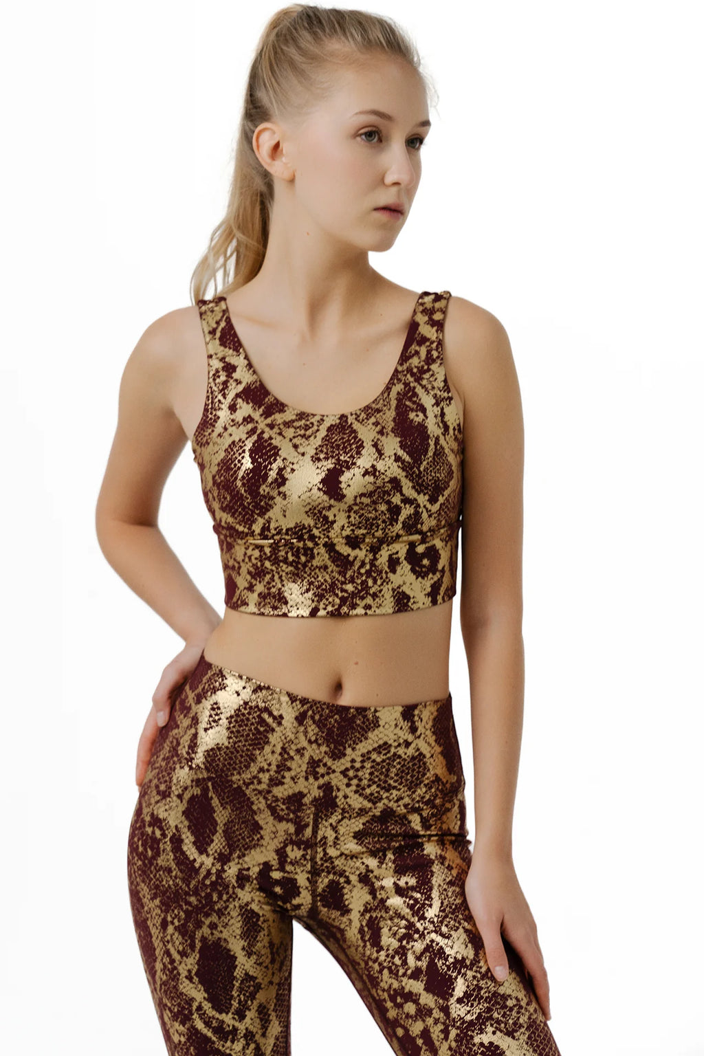 Unleash your inner glam with our stunning Snake Skin Print Bra, designed to turn heads and elevate your activewear collection. This eye-catching piece features a unique snake skin pattern, crafted with luxurious metallic silver...